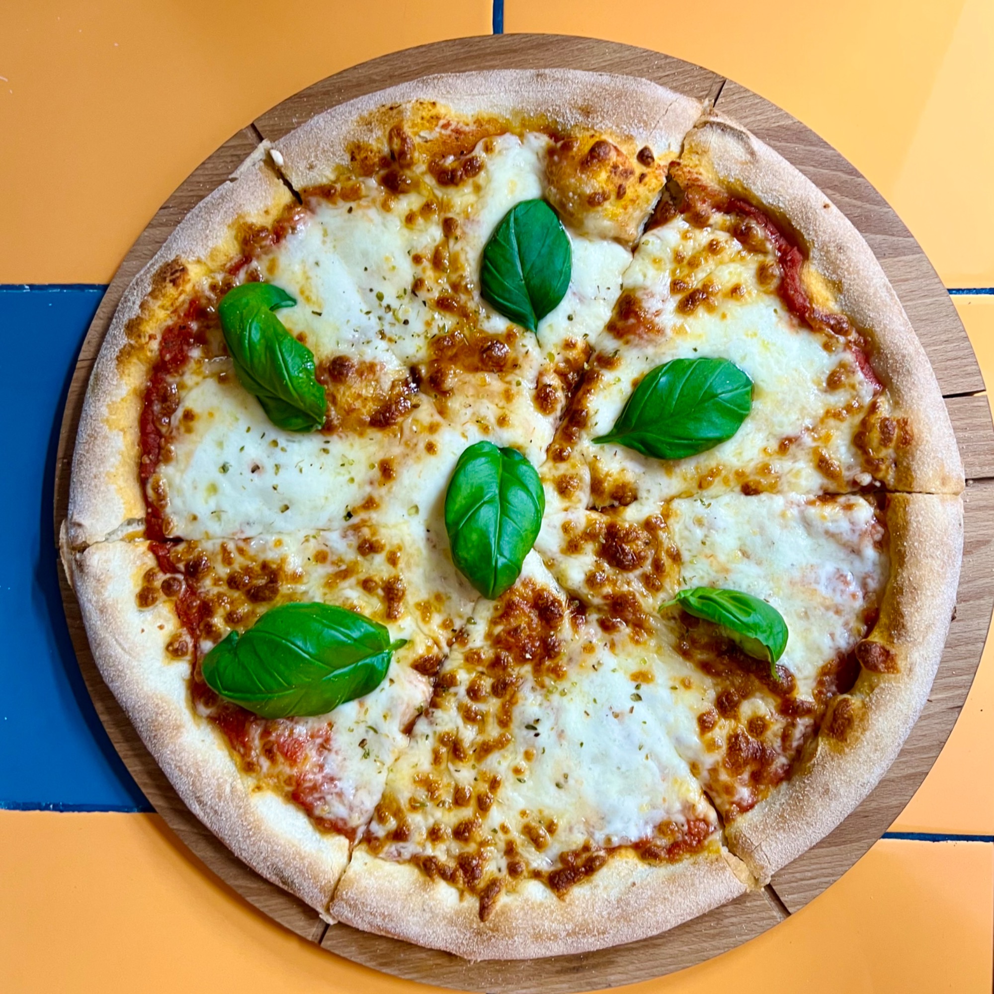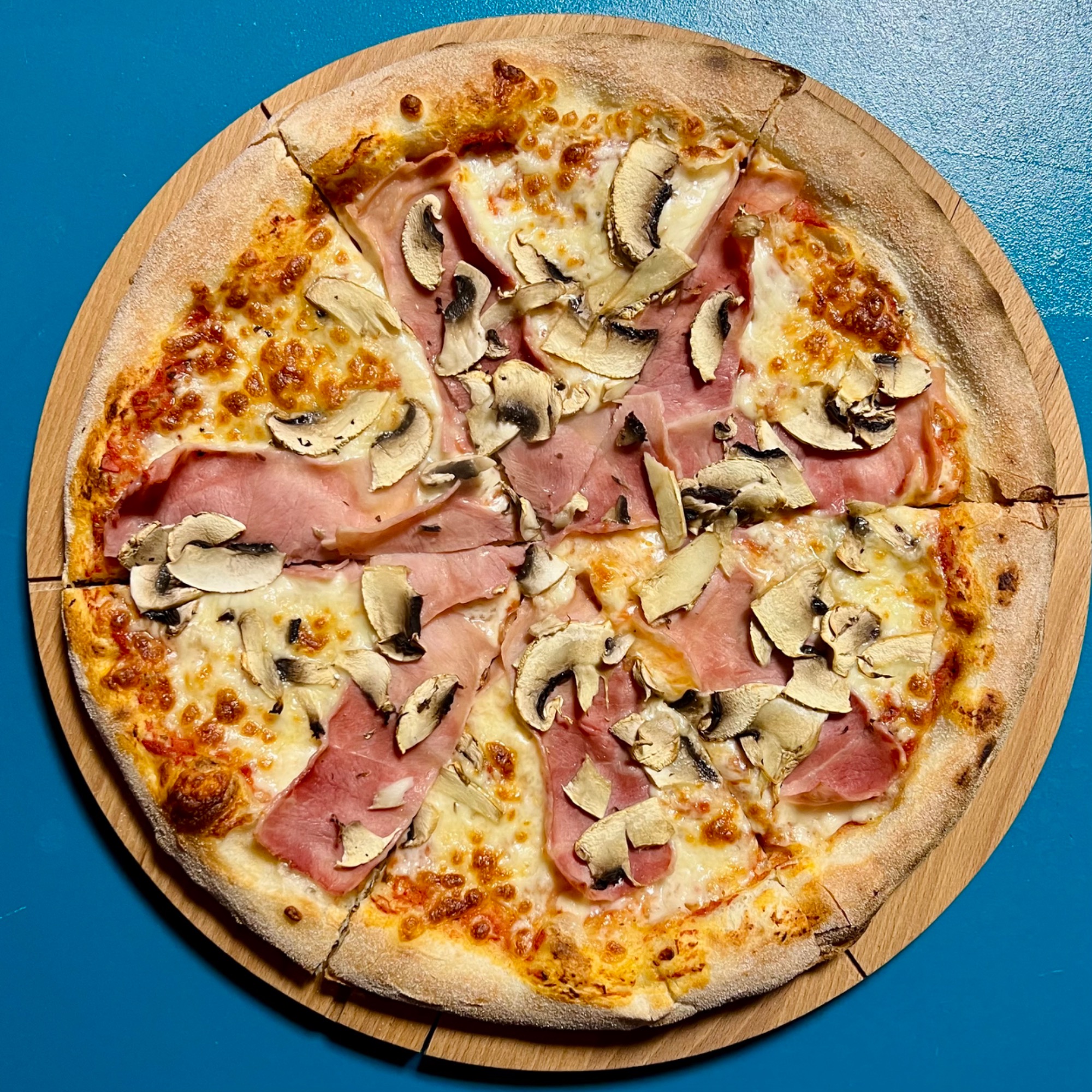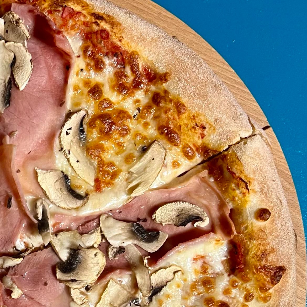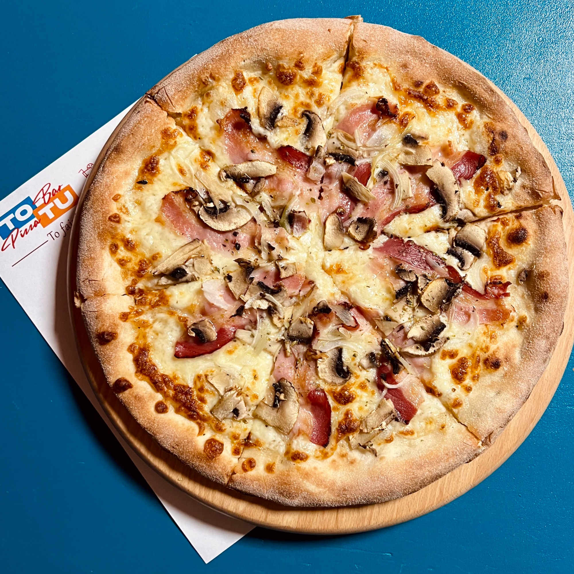 Każda pizza wypiekana w ToTu jest przez nas z czułością ręcznie wyrabiana z wysokiej jakości mąki. Ciasto leżakuje min. 8-12 godzin, dojrzewając w chłodnych warunkach. Krążek ciasta jest rozciągany wyłącznie ręcznie – powietrze przesuwane jest od środka na zewnątrz, dzięki czemu środek jest cieńszy, a brzeg bardziej puszysty i chrupiący. Czarne, przypalone bąble na brzegach świadczą o dobrze nagrzanym piecu i świetnie wypieczonym cieście.