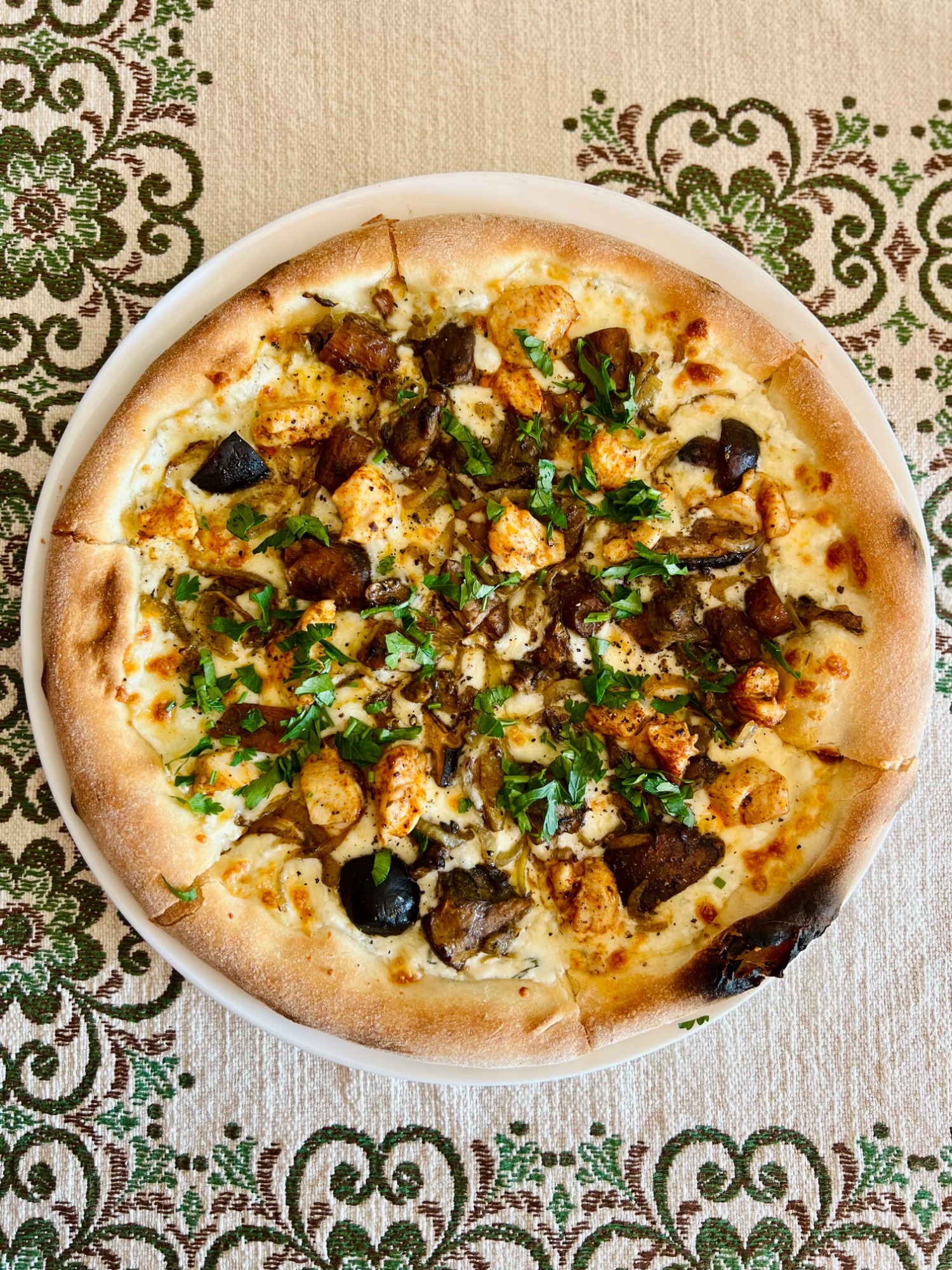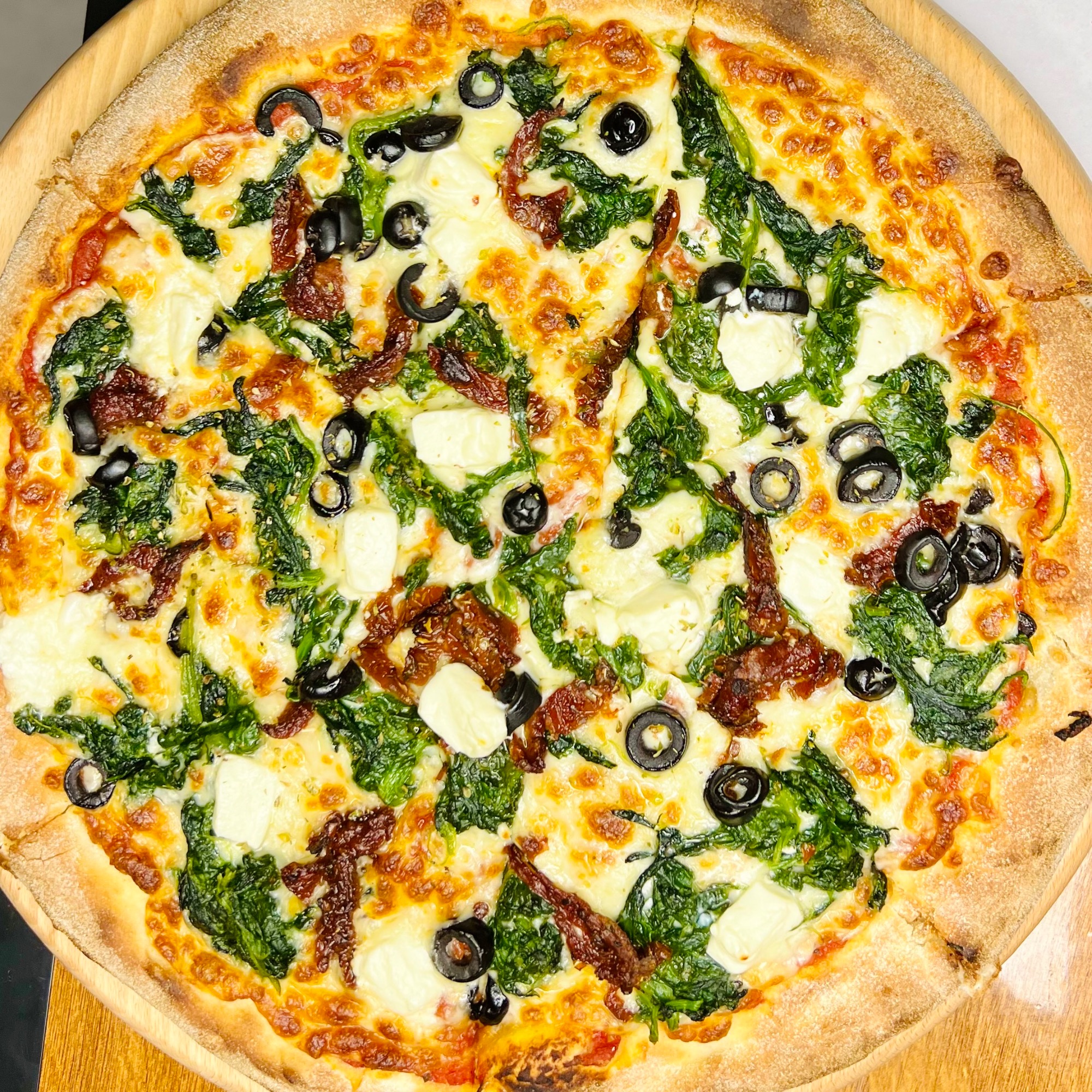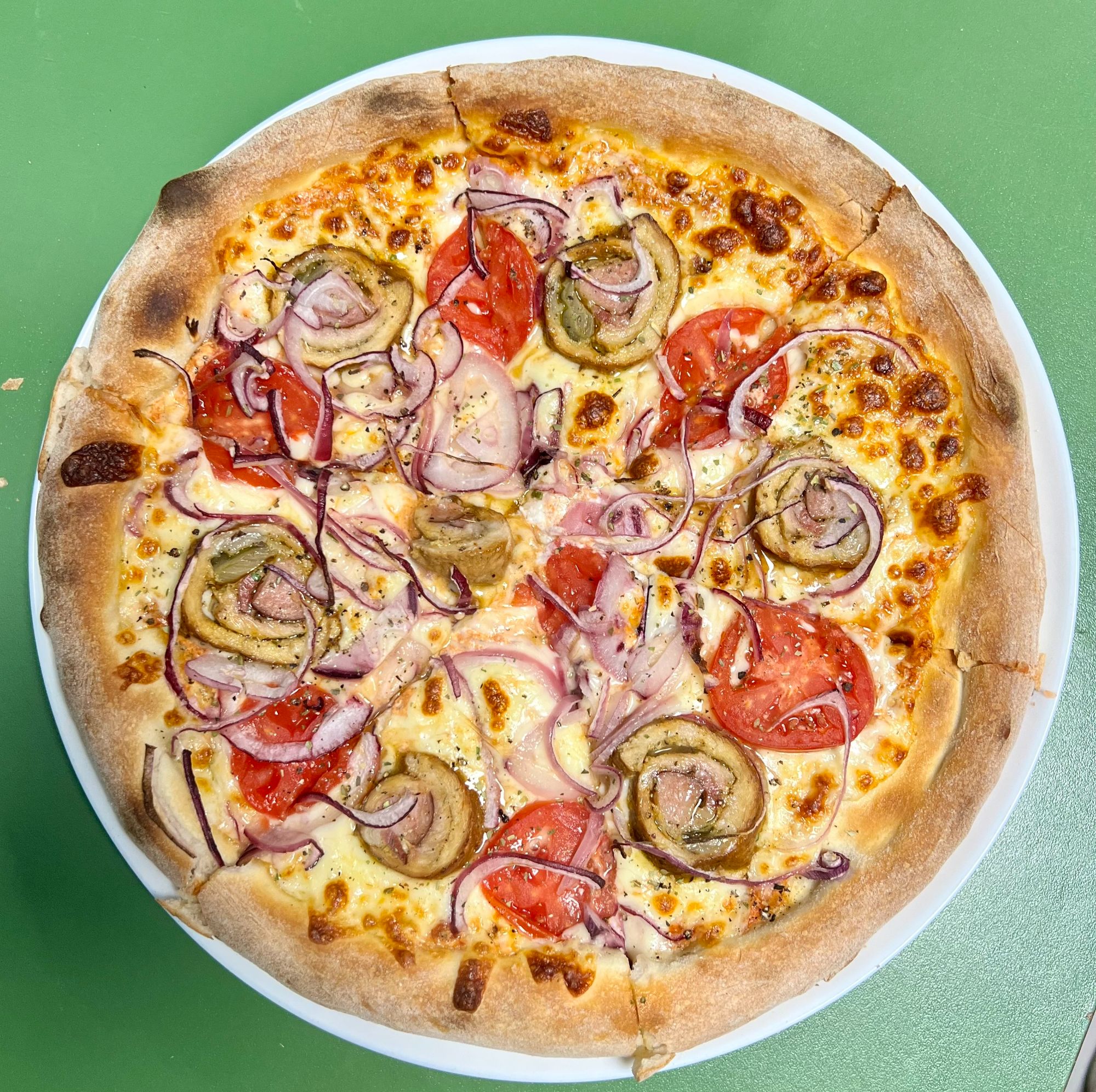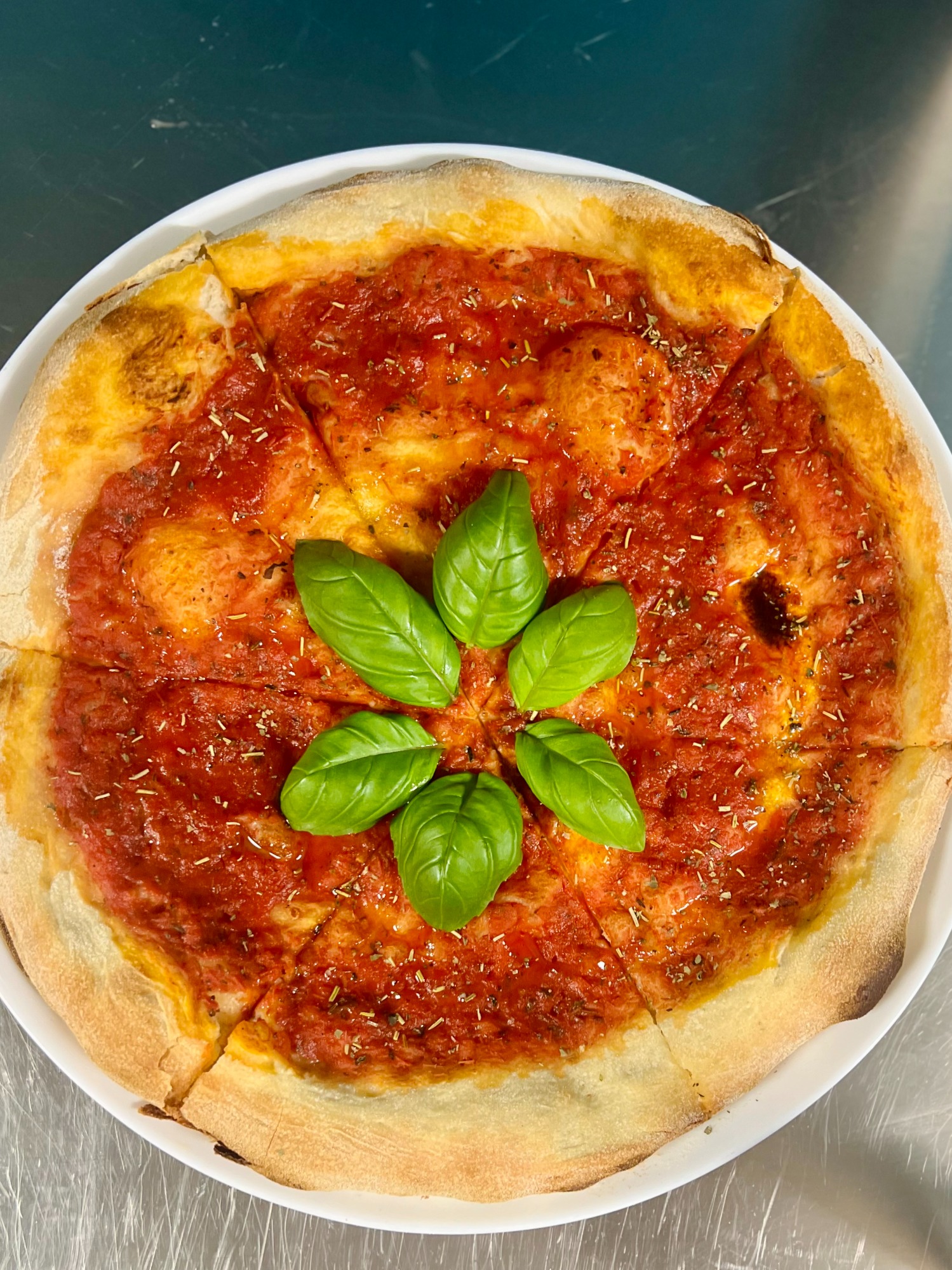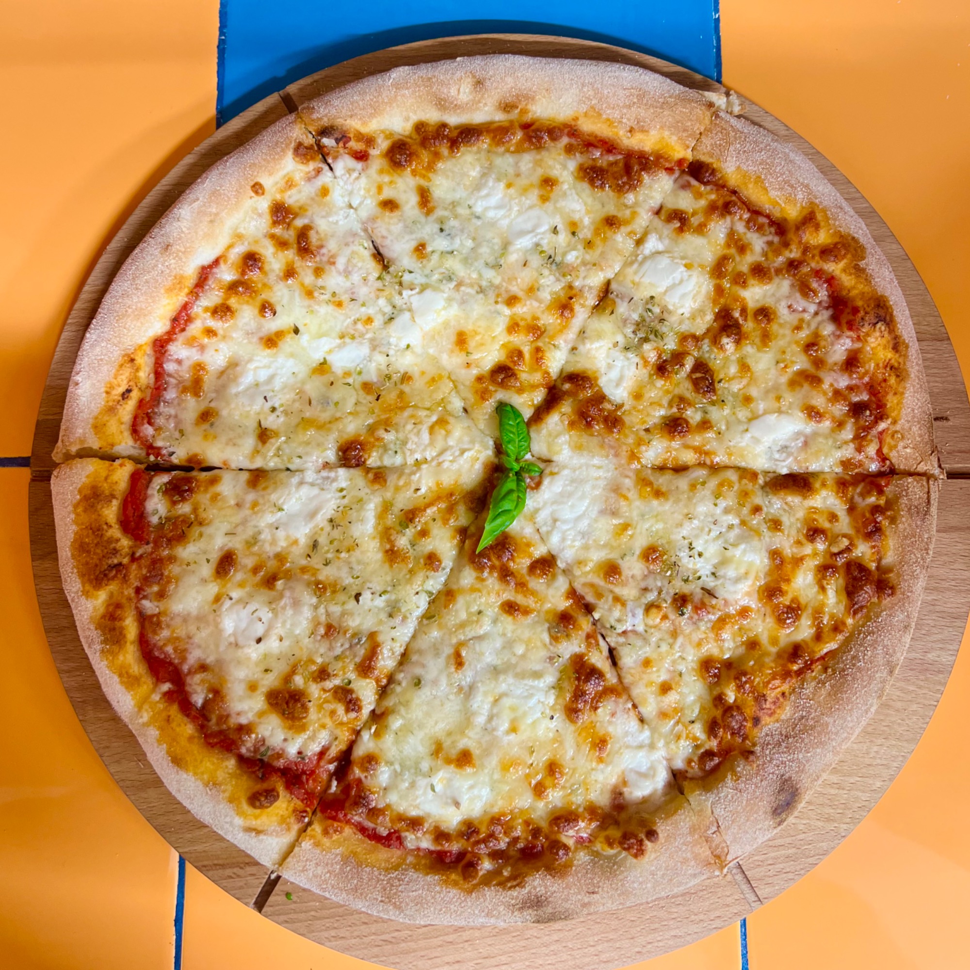 Każda pizza wypiekana w ToTu jest przez nas z czułością ręcznie wyrabiana z wysokiej jakości mąki. Ciasto leżakuje min. 8-12 godzin, dojrzewając w chłodnych warunkach. Krążek ciasta jest rozciągany wyłącznie ręcznie – powietrze przesuwane jest od środka na zewnątrz, dzięki czemu środek jest cieńszy, a brzeg bardziej puszysty i chrupiący. Czarne, przypalone bąble na brzegach świadczą o dobrze nagrzanym piecu i świetnie wypieczonym cieście.